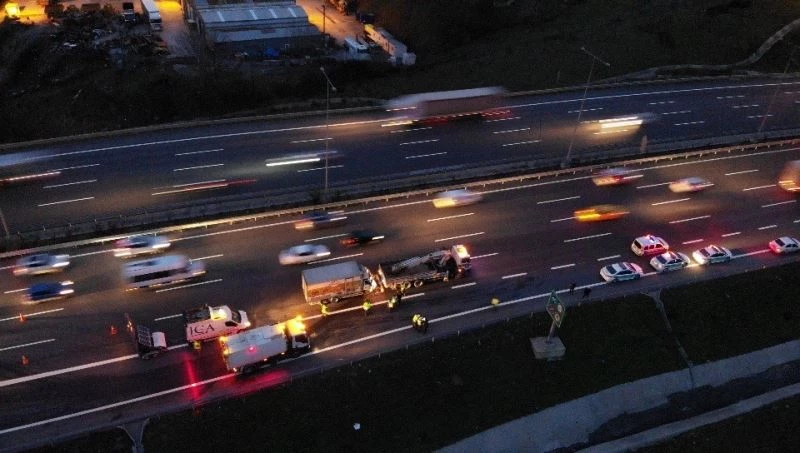 Kuzey Marmara Otoyolu’nda bir kamyon, önündeki tıra arkadan çarptı. 2 kişinin yaralandığı kaza nedeniyle otoyolda kilometrelerce araç kuyruğu oluştu.