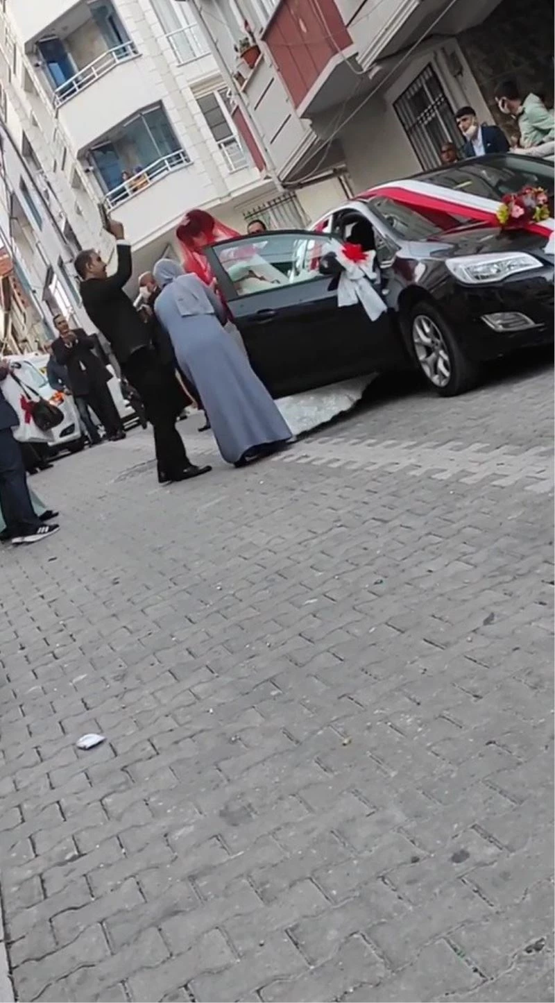 Olay, dün Esenyurt İstiklal Mahallesi’nde meydana geldi. Gelin alma merasiminden sonra eve gelen damat, gelini arabadan indirdiği esnada belinden tabancasını çıkartarak havaya ateş açtı. Çevredeki vatandaşlara aldırmayan damat, sonrasında ise hiçbir şey olmamış gibi eğlencesine devam etti. Olayda şans eseri kimse yaralanmazken, maganda damadın havaya ateş açtığı o anlar ise çevredeki bir vatandaşın cep telefonu kamerasına yansıdı.