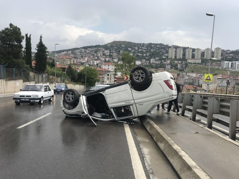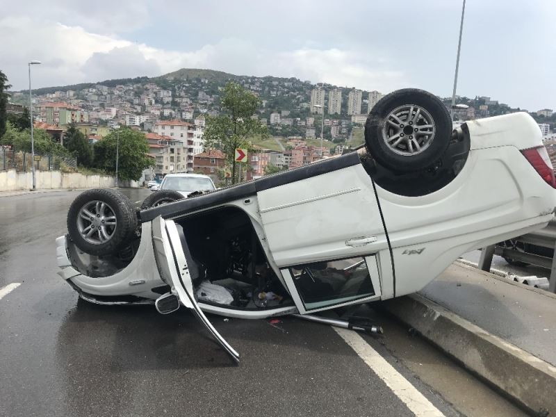 Kazayı gören bir vatandaş, “Aşırı hız ve yolların kaygan olması dolayısıyla dönerek takla atmış. Yol yağmurun etkisiyle ıslak olduğu için böyle olmuş, geçmiş olsun “ diye konuştu.