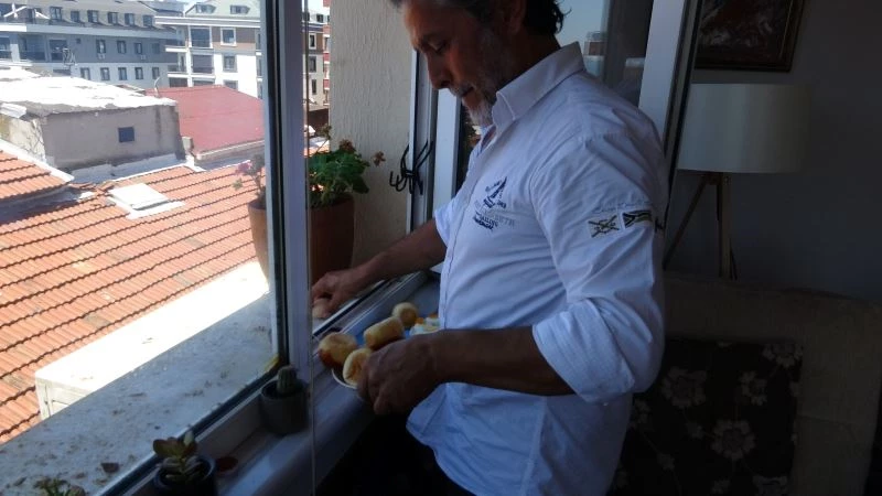 Maltepe’de penceresine gelen martıyı ağzıyla besliyor