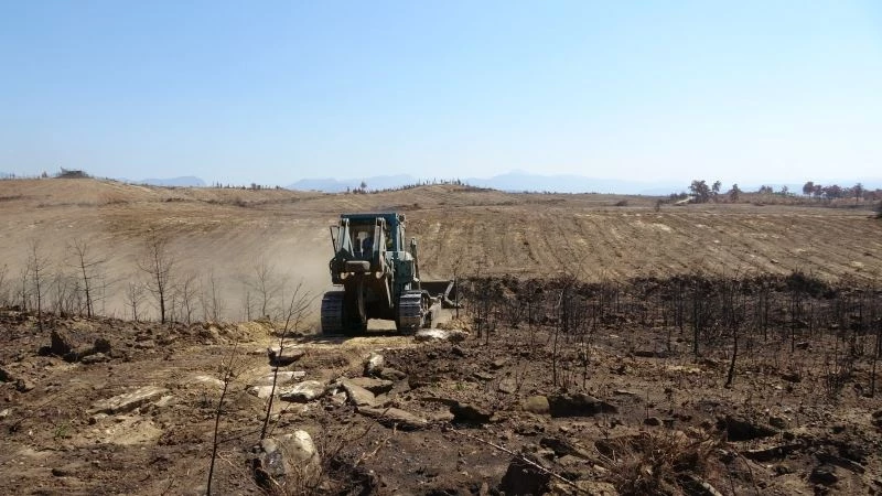 28 Temmuz’da başlayıp 10 gün devam eden ve 30 hektar ormanın yandığı Cumhuriyet tarihinin en büyük orman yangınında yanan alanlarda dikim hazırlıkları başladı. Yangından en fazla zarar gören yerlerden bir tanesi olan Kalemler Mahallesinde Orman Genel Müdürlüğü ve DSİ’ye ait iş makineleri yanan bölgeleri iş makineleriyle sürüp dikime hazırlıyor.