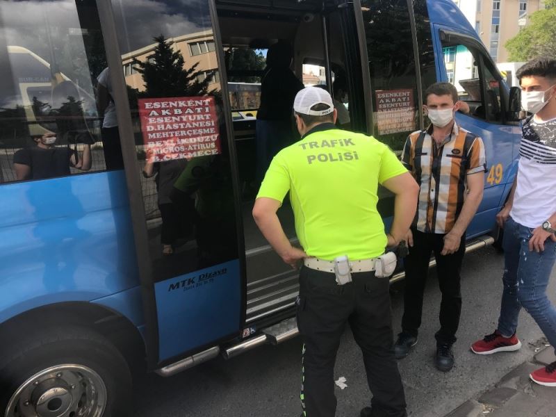 Yeni tip korona virüs salgını ile mücadele kapsamında dikkat çekilen sosyal mesafe kurallarına uymayan toplu taşıma araçlarına yönelik denetimler sürüyor. Esenyurt’ta minibüslere yönelik yapılan uygulamalarda sosyal mesafe kuralını ihlal ederek ayakta yolcu taşıyan minibüslere ceza yağdı.