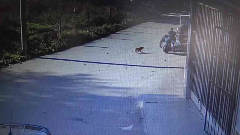 Bursa’da kendisine saldıran köpeğe sinirlenen motosikletli şahıs, köpeği kovalamaya başladı. Motosikletiyle hızlanan şahıs, duramayarak yol kenarında araba tamir eden 2 kişiye çarptı. Bu ânlar güvenlik kamerasına saniye saniye yansıdı.