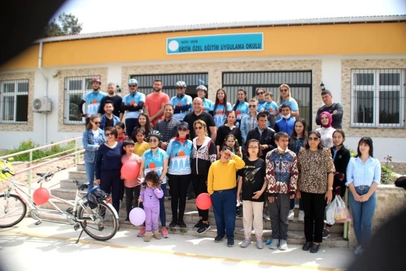 İki Gün İki Teker Bisiklet Spor Kulübü Derneği üyeleri, Yoncadüzü Mahallesindeki Özel Eğitim Merkezi Okulu’ndaki öğrencileri ziyaret ederek bisiklete bindirip eğlendirdi.
