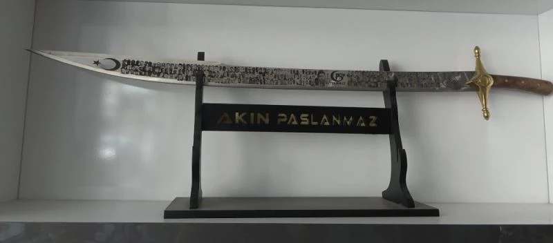 “Aksesuar olarak kullanılacak olan kılıç var veya bir de torunuma benim atalarımızdan görmüş olduğumuz kılıçlardan isterlerse onun yapımı çok uzun sürüyor. Bunun kabzaları değişik oluyor, icabında hazır fleks ya da pleksi gibi malzemelerden yaptığımız kılıçların sapları uğraştırmıyor ama bunu bir koç boynuzundan ya da bir geyik boynuzundan yaparsak o haliyle uğraştırıyor. Bunların hepsi zaman meselesi ve zamanla olan şeyler. Burada yapılan kılıçlar dünyanın her yerine gidiyor. Türkiye geneli ağırlıklı Almanya’dan gelen misafirler götürüyor ve dışarıdan istekler oluyor. İnternet olması sebebiyle herkes görüyor, Avrupa’dan da çok fazla takip eden var. Zamanı geliyor Avrupa’ya da bıçak, kılıç gönderiyoruz. Bu internet işi bizi iyi yerlere getirdi. Dizi ve filmlere de kılıç, bıçak gönderiyoruz.”