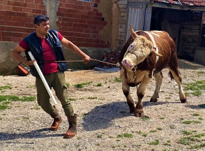 Kurban Bayramı öncesi tüm Eskişehir’de kurban hareketliliği devam ediyor. Korona virüs (Covid-19) nedeniyle hayvan satımının düştüğü gözlenirken, vatandaşlar bütçelerine uygun kurbanlık arıyor. Hayvancılığa gönül verip dede mesleğini sürdüren Mustafa Valioğlu isimli besicinin sahip olduğu Coşkun isimli tosun da alıcısını bekliyor. Coşkun’un sahibi yıllardır elinde büyüyen 3 yaşındaki tosun için 30 bin lira istiyor. İkinci el otomobil fiyatına alıcısını bekleyen 1 tonluk Coşkun’un cidago yüksekliği ise 1 metre 70 santimetre geliyor.