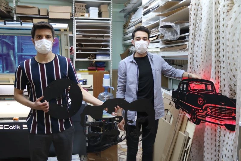 Korona virüs sürecinde eve kapandıktan sonra kendisine bir uğraş aradığını dile getiren 21 yaşındaki Veli Dikencik, Korona başladıktan sonra eve kapanınca yapacak bir şeyler aradık. Boş durmak istemedik. Okul da uzaktan olduğu için vaktimiz çoktu. Önce kendi hobimiz olarak başladık bu işe. Birkaç parça malzeme çıkarttık. Arkadaşlarımız çok beğendi. Sosyal medyada bir sayfa açtık ve iyi yerlere geldi. Sipariş geldikten sonra Autocad’den çizim yapıyoruz. Ondan sonra makinemizde 5 milimetrelik MDF levhalardan ürünlerimizi çıkartıyoruz ve boyuyoruz. Bu işe başlarken elimizde hiç para yoktu. Arkadaşlarımız bizi hep desteklediler ve yanımızda oldular. Genç arkadaşlarıma tavsiyem, ellerinden hangi iş geliyorsa üzerine gitsinler. Boş durmasınlar. Sonunda hedeflerine ulaşacaklarını düşünüyorum” diye konuştu.