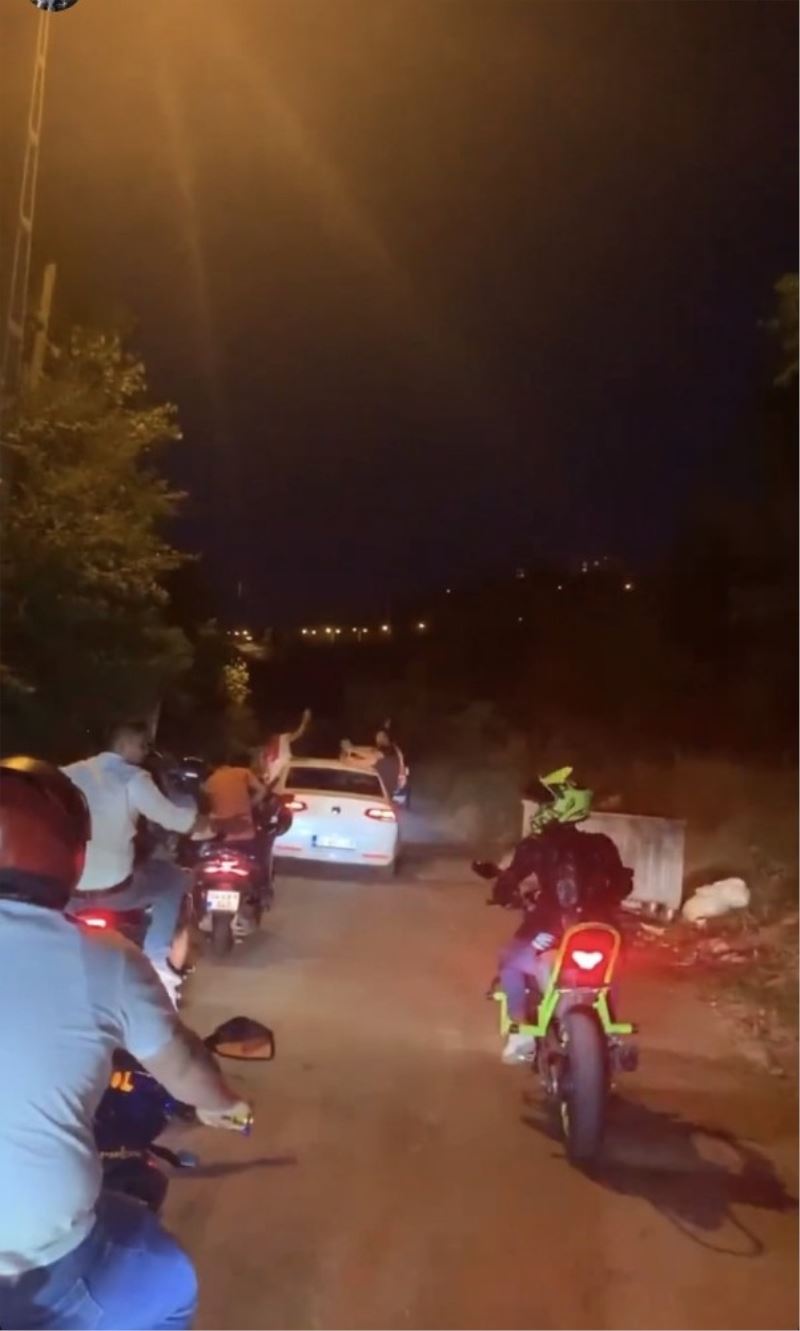 Eğlencelerin ardından araçlarına binen grup konvoy halinde trafiğe çıktı. Bir süre sonra yolu trafiğe kapatan gruptaki gençler, araçlarından inerek yol ortasında askere gidecek arkadaşlarını havaya fırlattı. Yollarda dörtlü sinyalleri yakarak şeritlere dağılan grup, trafiği yavaşlatarak hem kendi hem de vatandaşların canlarını tehlikeye attı. Magandalar patinaj çekerek ortalığı dumana boğup adeta mega kentin adeta altını üstüne getirdi.