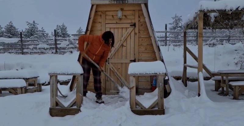 Bursa’da şehir yaşamından bıkan Tekin çifti her şeyi geride bırakıp karla kaplı Uludağ’a yerleşti. Doğa sporları ile ilgili outdoor malzeme satışı yaptıkları iş yerlerini tasfiye ederek yeni maceraya yelken açan çift, tek göz tahta baraka ile başladıkları yaşam alanlarını kısa sürede kampçıların uğrak yeri haline gelen kamping alanına çevirmeyi başardı.