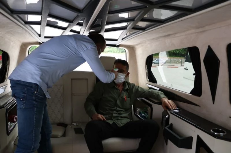 Zonguldak’ta şehirler arası taşımacılık yapan bir firma, karayolu taşımacılık fiyatlarının artması nedeniyle yolcularına otobüs yerine özel VİP araçla hizmet veriyor. Yolculuk öncesi yolcuların ateşi ateş ölçer ile ölçülüyor ve sosyal mesafe kuralları dikkate alınıyor.