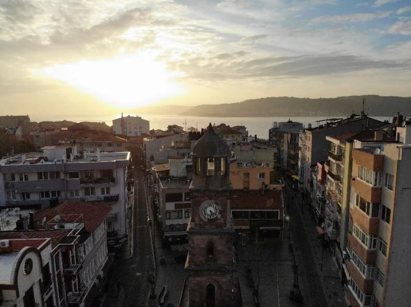 Çanakkale’de, korona virüs salgınının yayılımını engellemek amacıyla uygulanan sokağa çıkma kısıtlaması sebebiyle cadde ve sokaklar boş kaldı. Kentin sessizliğe bürünen en işlek noktaları drone ile havadan görüntülendi.