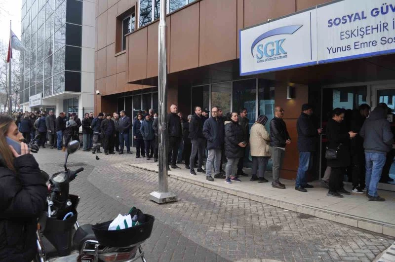 Emeklilikte Yaşa Takılanlar (EYT) ile ilgili kanunun yürürlüğe girmesiyle birlikte Eskişehir’deki Sosyal Güvenlik Kurumu (SGK) binasının önünde uzun kuyruk oluşturdu.