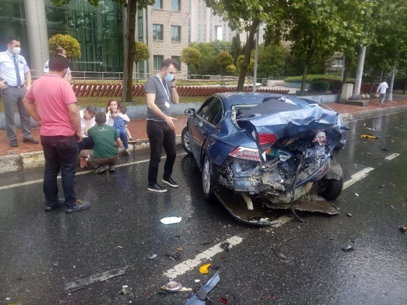 Şişli Büyükdere Caddesi’nde bir ticari taksi otomobile arkadan çarptı. Kaza sonucu 3 kişi yaralanırken, otomobilde bulunan küçük çocuk kazanını şokunu uzun süre üzerinden atamadı.
