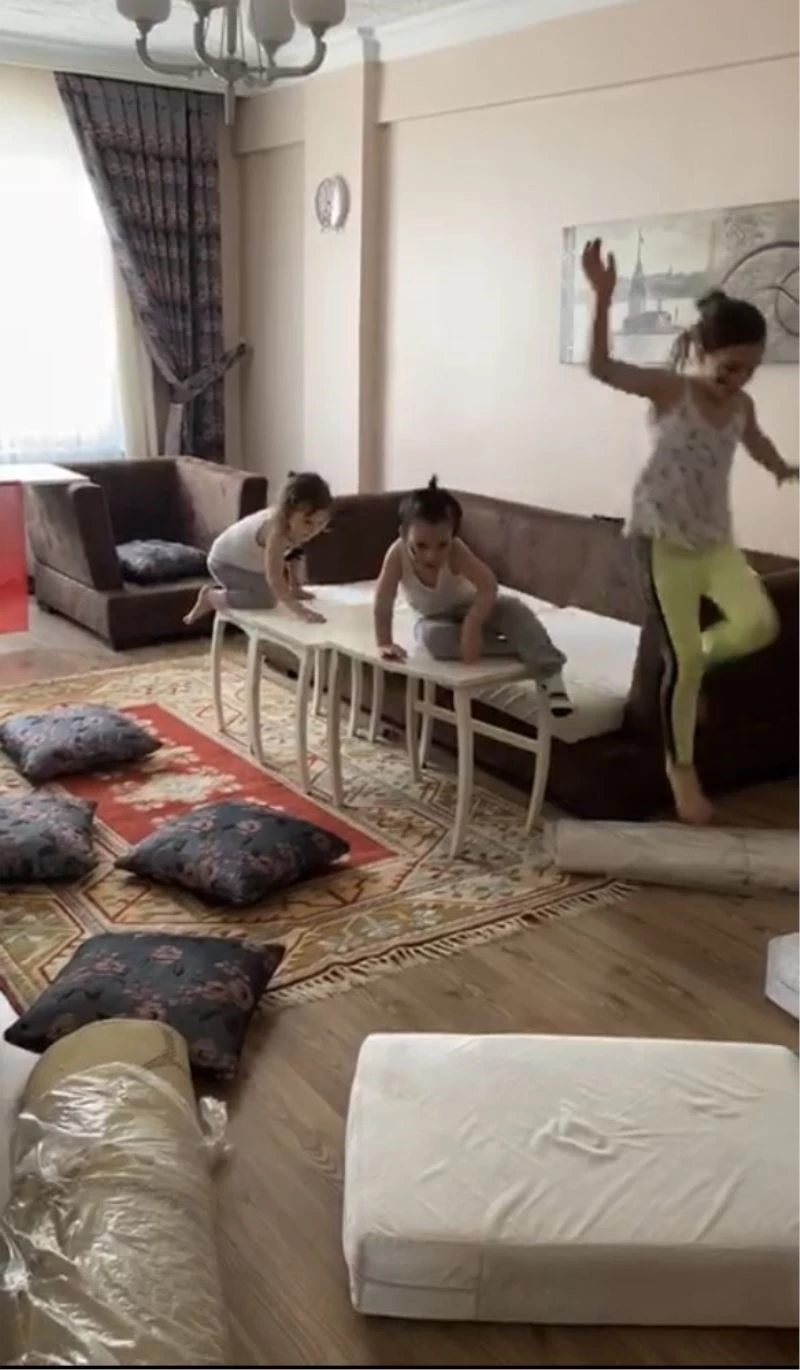 Ramazan Bayramı’nın ikinci gününde sokağa çıkma yasağı bulunan 3 çocuk, babalarının salonda sandalye, minder ve koltuklarla hazırladığı parkurda doyasıya eğlendi. Çocukların “survivor” tadındaki eğlencesi kameralara yansıdı.