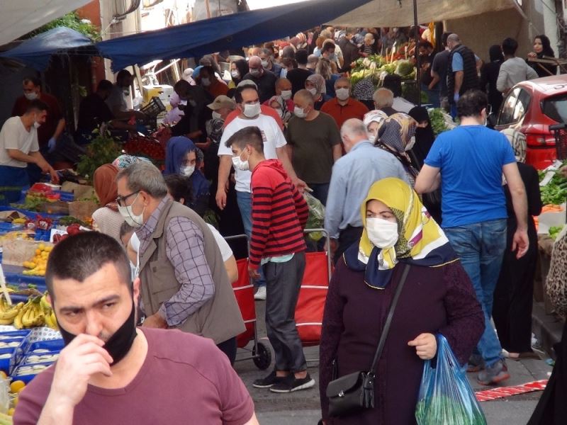 Sokağa çıkma kısıtlaması öncesi semt pazarlarına koşan vatandaşlar sosyal mesafe kuralını hiçe saydı. Durumdan şikayetçi olan bir kişiye başka bir vatandaş ilginç bir tepki göstererek, “Buradaki pazarcıların ekmeğiyle oynuyorsun, şikayetçiysen git dilekçe yaz” dedi.
