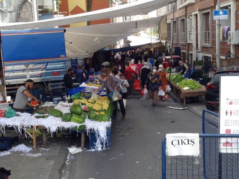 (Özel) Sosyal mesafenin hiçe sayıldığı semt pazarında kural tartışması