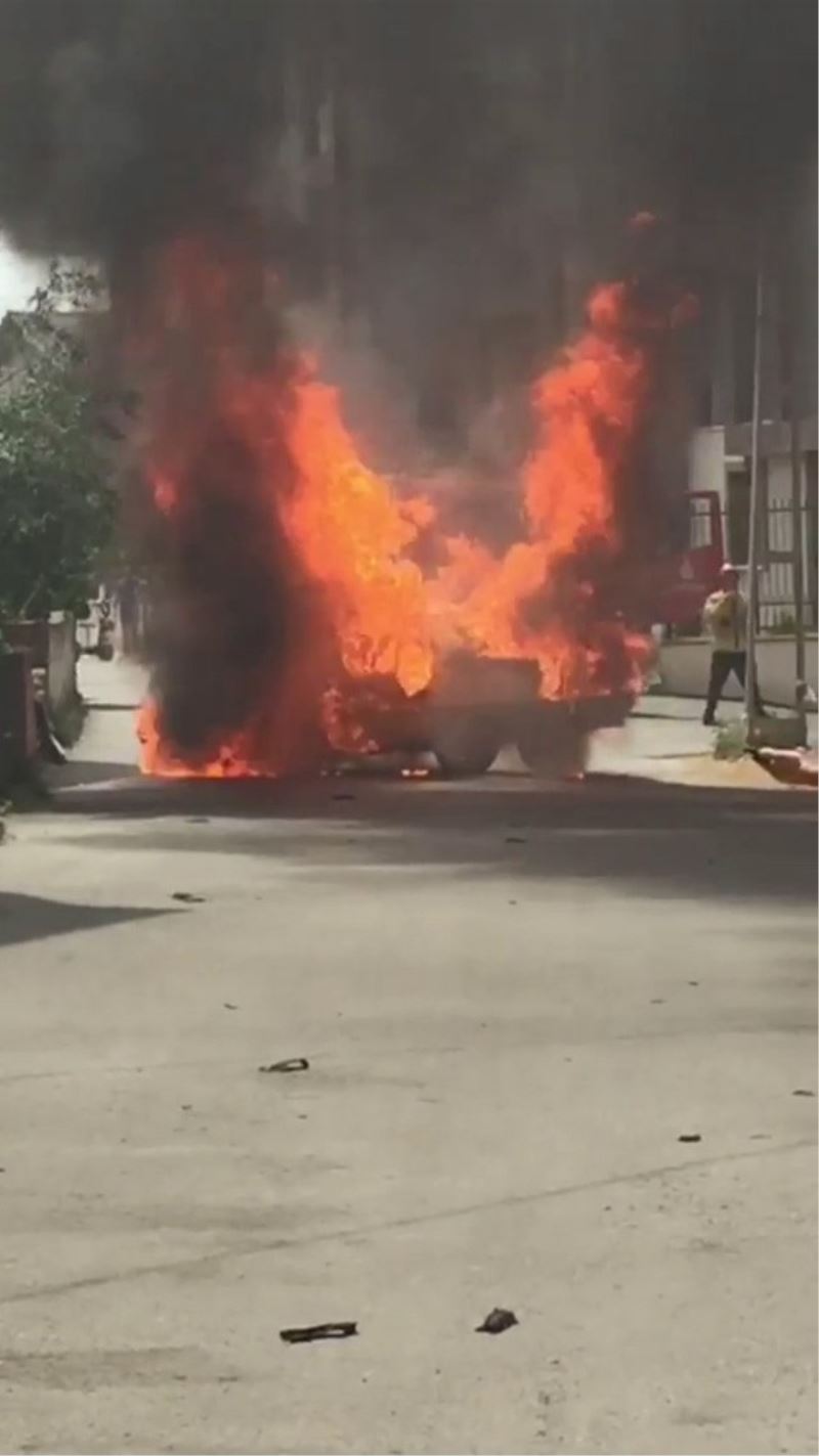(Özel) Sürücü kontağı çevirdiği an otomobil alev alev yandı