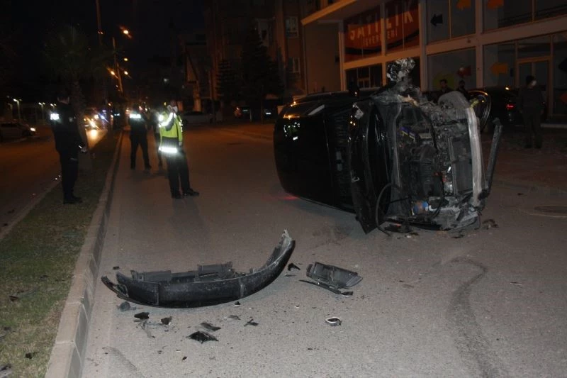 Antalya’da virajı alamayarak palmiyeye çarptıktan sonra takla atan araçta bulunan ve kendi imkanlarıyla araçtan çıkan 2 kişi koşarak kaza yerinden kaçtılar.