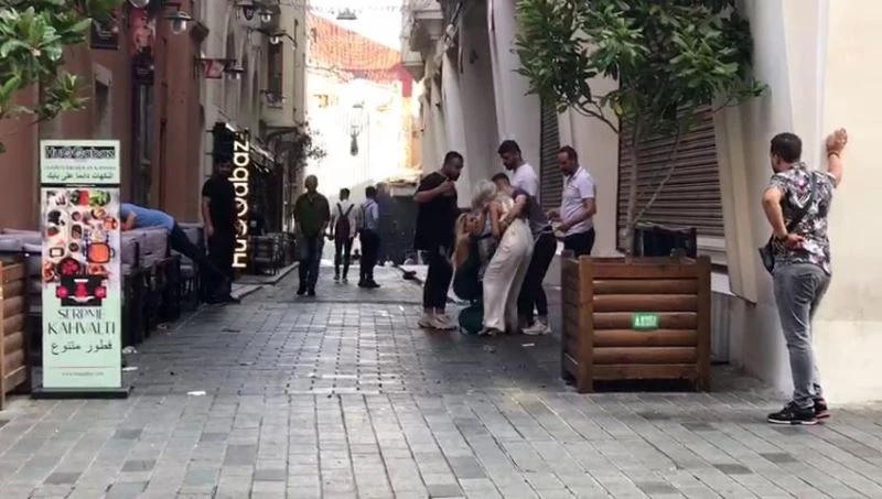 Olay, saat 08.30 sıralarında Taksim Meydanı’nda meydana geldi. Edinilen bilgiye göre, iki kadının sabah saatlerinde eğlence mekanından çıkmasının ardından aralarında erkek arkadaşıma yan gözle baktın tartışması çıktı. Kısa sürede büyüyen kıskançlık tartışması iki kadının birbirine saldırmasıyla saç başa kavgaya dönüştü. Kadınların yanlarındaki erkeklerin kavgayı ayırmaya çalıştıkları görülürken, çevredeki vatandaşların ise şaşkın gözlerle kavgayı seyrettiği görüldü. Kadınların saç başa birbirlerini dövdüğü kavga anları ise bir cep telefonu kamerasına saniye saniye yansıdı.