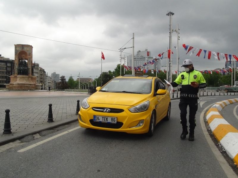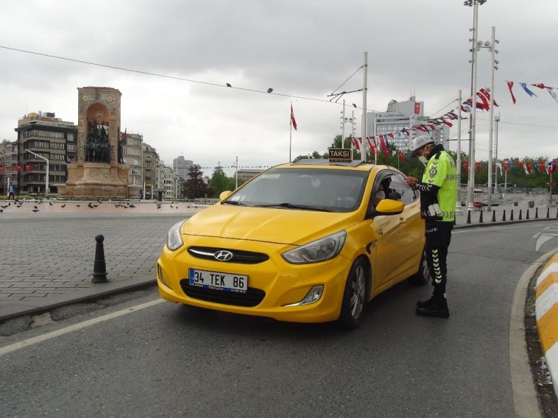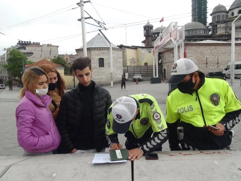 Taksim’de denetleme yapan trafik polisleri, kısıtlamaya rağmen sokağa çıkan turistlere ceza yazdı.