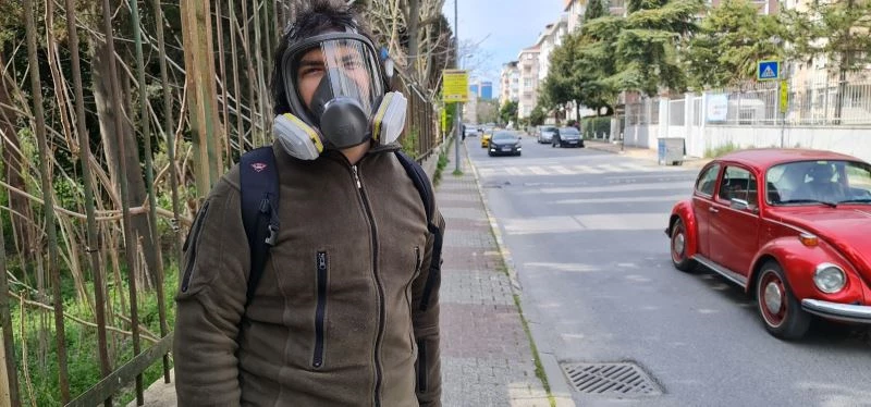 İstanbul’da artan korona virüs vakaların sonrası tedbiri abartan bir genç, Bakırköy sokaklarında ilginç bir görüntü oluşturdu. Gaz maskesini takan Hakan Köseokur isimli genç, sokaklarda bu şekilde dolaşınca çevredeki insanların da dikkatini çekti. Pandemi korkusuyla gaz maskesi takan Köseokur, meraklı bakışlara aldırış etmeden çevrede dolaştı.