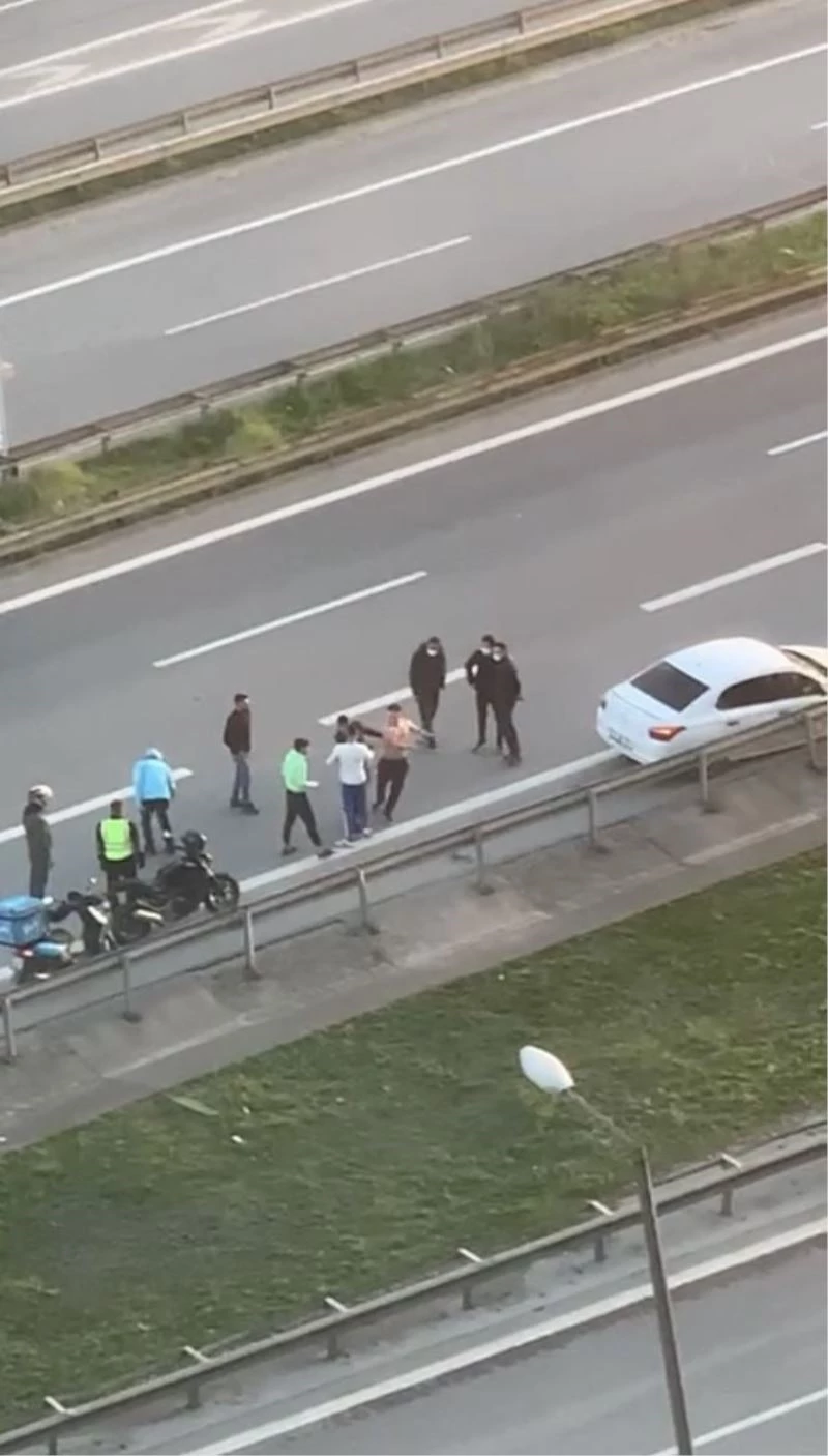 Sokağa çıkma kısıtlamasında TEM Otoyolu Ataşehir bağlantı yolunda araçla seyreden iki grup, yol verme tartışması nedeniyle tekme ve yumruklarla birbirine girdi. Gruptaki gencin bir yumrukla yere serildiği kavga anları cep telefonuna yansıdı.