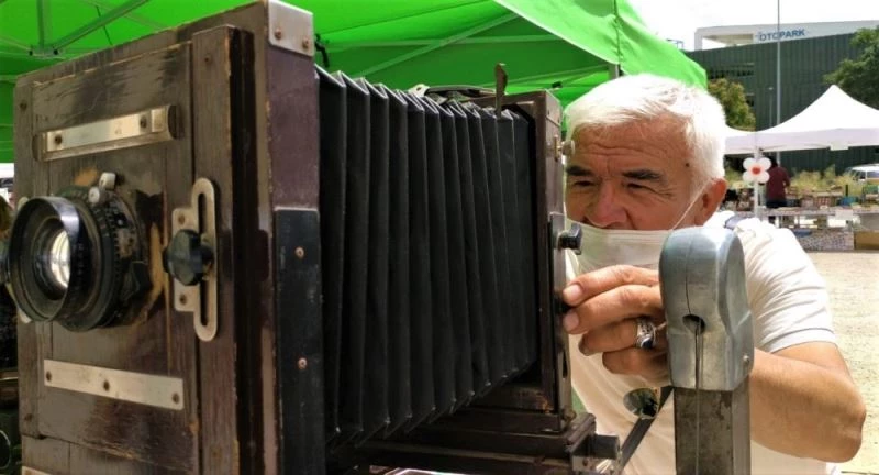 Türkiye’de özelliklerine göre sadece iki tane olan 1950’li yıllardan kalma körüklü fotoğraf makinesi, meraklılarını kendine hayran bırakıyor.
