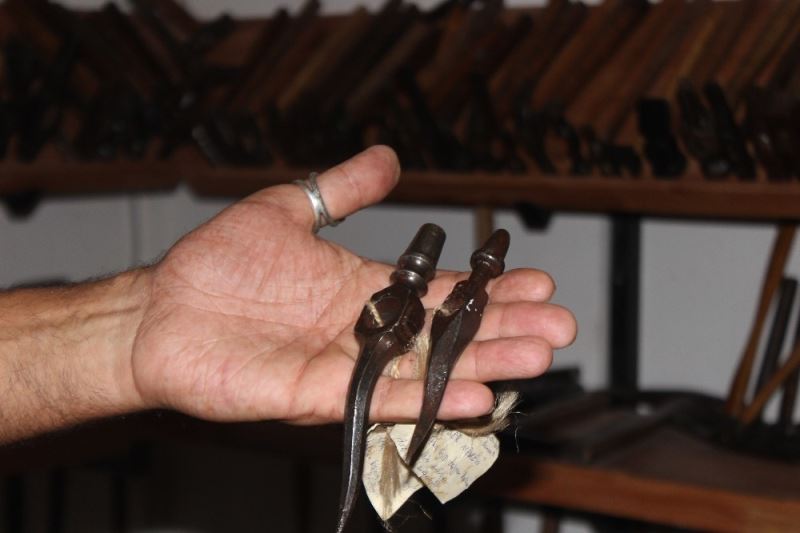 İlk alet çekiç yani milattan önce taşları çekiç olarak kullanıyorlar. Çekiç formatında olmasa dahi bir şey kırmak için, bir şeyi fırlatmak için, bir şeyi parçalamak için, dövmek için tarih boyu çekiç olarak bir taş kullanılmış. Ondan sonra o taşlar önem kazanarak şekillenmeye başlanılıyor. Yuvarlatılıyor birbirine sökerek cilalı hale getiriyorlar, sapa adapte ediyorlar” diye konuştu.