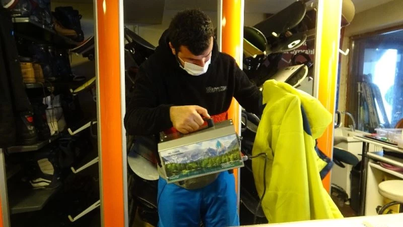 (Özel) Uludağ’da kayak malzemeleri tek tek dezenfekte ediliyor