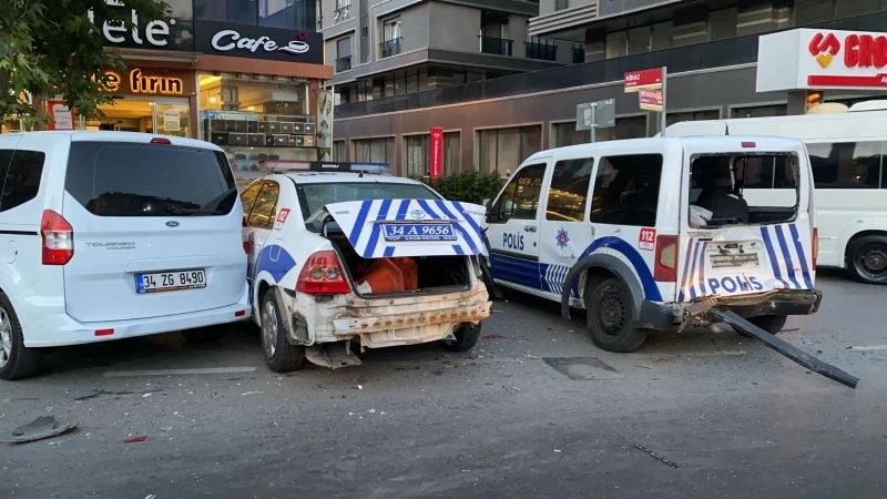 (Özel) Ümraniye’de minibüs sürücüsü, 3 polis aracına çarparak durabildi