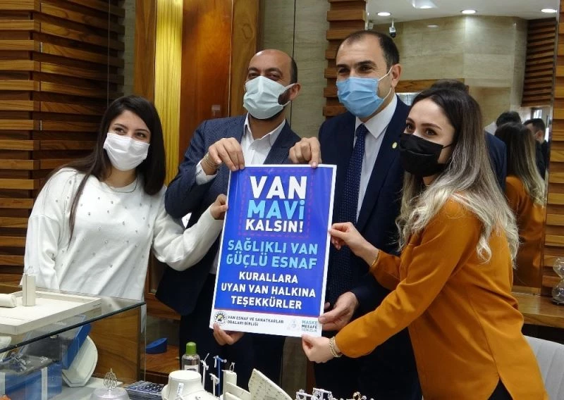 Konuyla ilgili açıklamada bulunan Van ESOB Başkanı İsa Berge, amaçlarının korona virüsü kentte yok etmek olduğunu vurgulayarak, “ESOB olarak halkımıza, esnafımıza, sanatkarımıza, tüccarımıza çağrımız; Van mavi kalsın. Sağlıklı Van; güçlü esnaf, güçlü ekonomi ve güçlü sağlık tedbirleri demektir. Biz eğer sağlık tedbirlerinden kurtulmak istiyorsak, kurallara riayet edeceğiz. Esnafımızın, sanatkarımızın, halkımızın tümü kurallara riayet edecek. Van’a mavi çok yakıştı. Van Gölü’nün edasıyla Van mavi kalmalı. Bu edayı hep beraber elimizden geldikçe maske, mesafe ve hijyen kurallarına başta biz esnaf olarak uymamız gerekiyor” dedi.