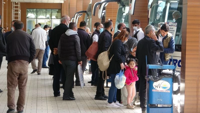 Tam kapanma kararının uygulanmasına bir gün kala Van’daki otogarda yoğunluk arttı.