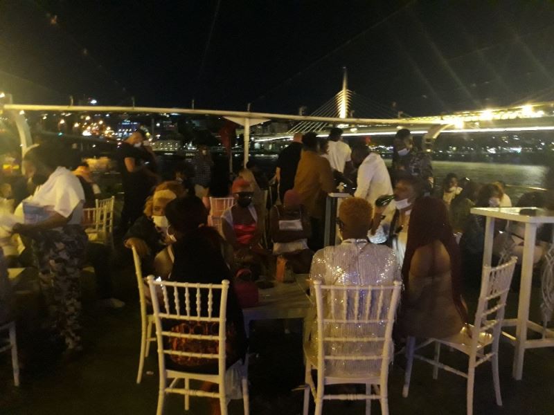 Haliç’te yabancı uyruklu kişiler, korona virüs kurallarını hiçe sayarak tekne partisi yaptı. Tekneye baskın düzenleyen polis ekipleri, çok sayıda kişinin pasaportunun ve oturum izinin olmadığını tespit etti.