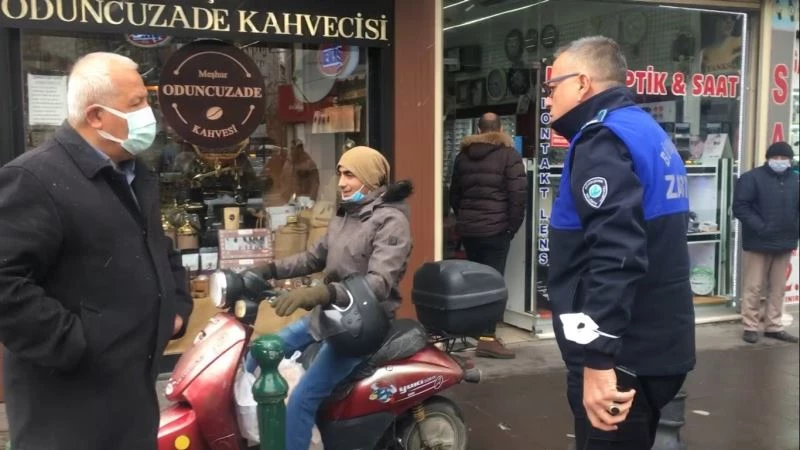Bugün öğlen saatlerinde İki Eylül Caddesi’nden yaya olarak ilerleyen İsa Kaya isimli vatandaş, arkasından hızla gelen motosikletin, önünden çekilmesi için kendisine korna çalması üzerine çileden çıktı. Çarpılmaktan son anda kurtulan Kaya, yol kenarında bekleyen zabıtayı çağırarak olayı anlattı. Gerilen ortamı sakinleştiren zabıta motosiklet sürücüsünü olay yerinden uzaklaştırdı.