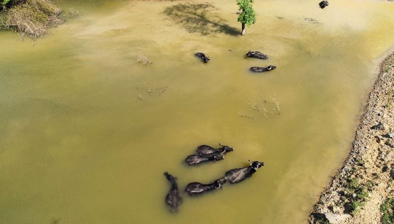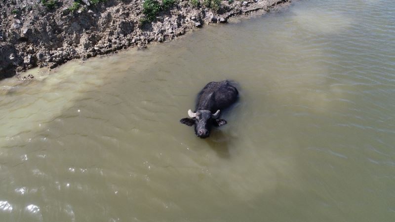 İstanbul Arnavutköy’de mandaların suda serinlendiği anlar Afrika görüntülerini aratmadı. Su ve çamuru çok seven mandalar, adeta oyun oynayarak sıcak havada suyun keyfini çıkardı.