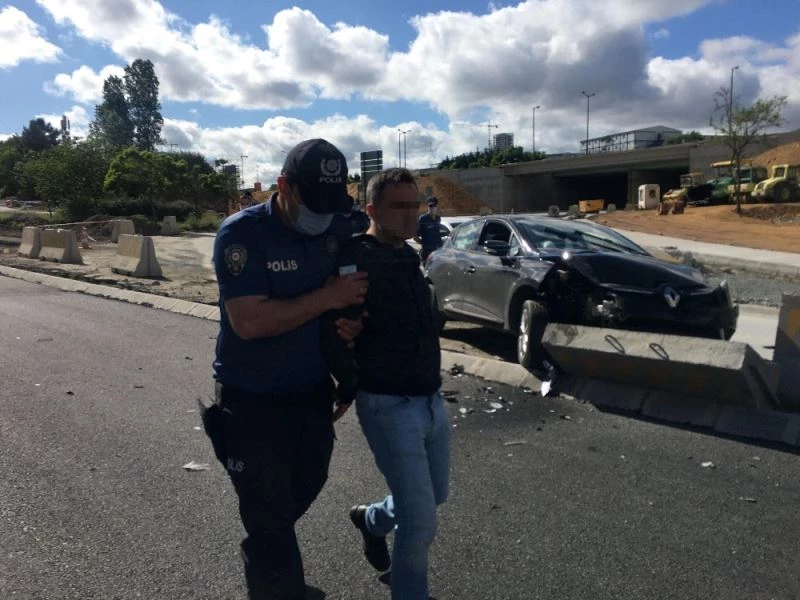 Ataşehir’de yolda yürüyen kadınlara otomobiliyle yaklaşıp sözlü tacizde bulunduğu iddia edilen alkollü sürücü, polis ekiplerini görünce aracıyla kaçmaya başladı. Kovalamaca sırasında beton bariyerlere çarparak kaza yapan şüpheli, yakalanarak gözaltına alındı. Bu sırada gazetecileri gören taciz şüphelisinin, ‘eyvah, bitti her şey’ demesi dikkat çekti.