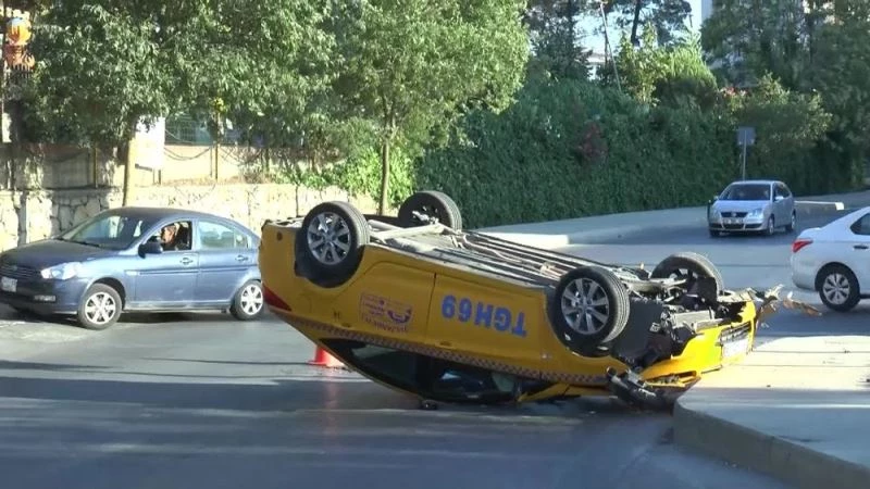 (Özel)Kartal’da kavşağa hızlı giren taksi takla attı: 1 yaralı