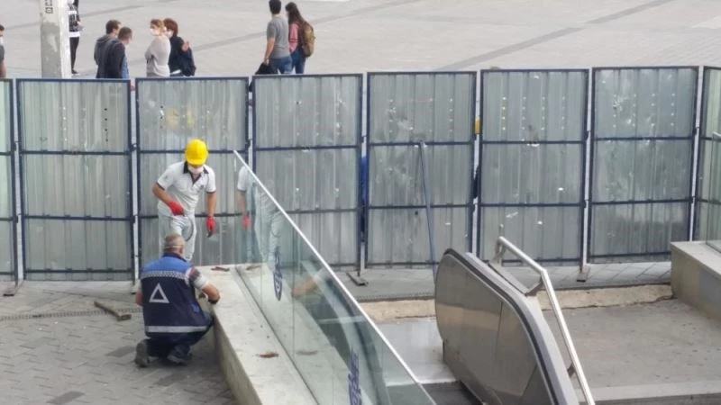 Dökülen parçaların olduğu alan sabah saatlerinde olay yerine gelen belediyeye bağlı ekiplerce çembere alındı. Ardından, Tünel Otobüs durağına inen yürüyen merdivenlerinin de bulunduğu alan demir sacla kapatıldı. Vatandaşlar da durağa inebilmek için 100 metre ileride bulunan diğer girişi kullandı.