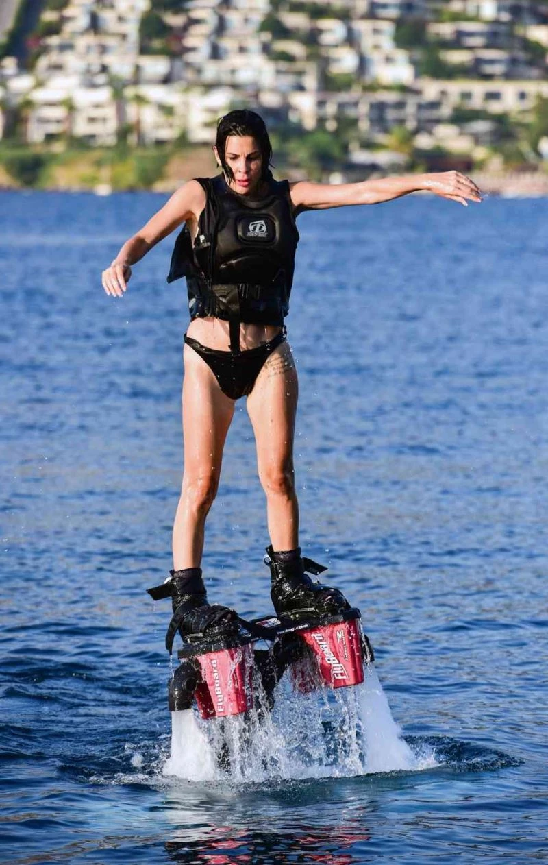 Yoğun geçen set çalışmalarından fırsat buldukça Bodrum’a ailesiyle birlikte tatile gelen Öztürk, eşi Kenan Özkan’la iddiaya girerek Flyboard yaptı. Denizde eğlenceli anlar yaşayan ünlü çift, ilk deneyimlerinde oldukça başarılı olurken, iddiayı da Eylül Öztürk kazandı.