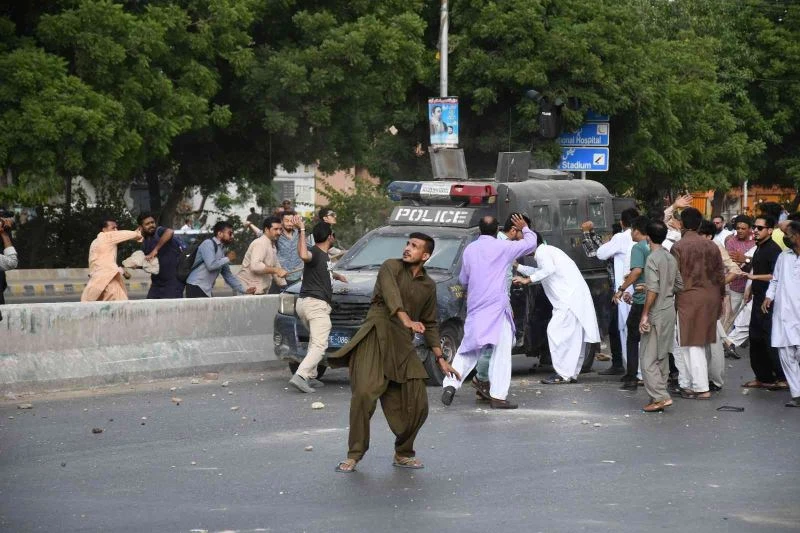 Pakistan’da birçok kentte sokağa inen eski Başbakan Imran Khan’ın partisi Tehreek-i Insaf (PTI) destekçileri polisin sert müdahalesi ile karşılaştı. Lahor’un ardından Karaçi’de de sokağa inen göstericilere, polis göz yaşartıcı gaz ve plastik mermi ile müdahale etti. Polise taşla karşılık veren göstericiler, bazı polis araçlarını ateşe verdi. Polis, kalabalığı dağıtmak için havaya ateş açarken, aralarında bir polis memuru ve bir kameramanın da bulunduğu çok sayıda kişi yaralandı.