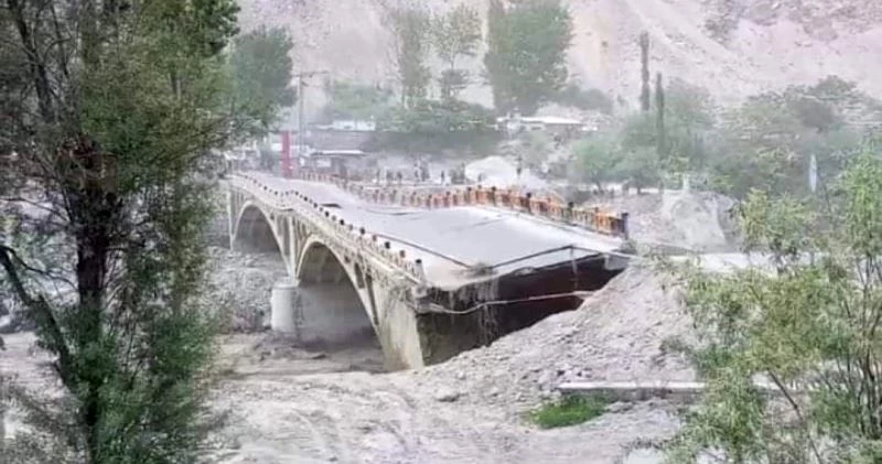 Pakistan’ın Gilgit-Baltistan eyaletinin Hunza bölgesindeki Karakurum Otoyolu üzerindeki Hassanabad Köprüsü, buzul gölünün taşması sonucu yaşanan selde yıkıldı. Hunza Polis Müfettişi Zahoor Ahmed yaptığı açıklamada, buzul gölünün dün sıcaklık nedeniyle erimeye başladığını ve meydana gelen selin köprüyü yıktığını belirtti. Eyalet polisi, köprünün yıkılmasının ardından trafiğin Sas Valley yolu üzerine yönlendirildiğini açıkladı. Çevredekiler tarafından kaydedilen görüntülerde, selin köprüyü yıkarak parçalarını sürüklediği görüldü.