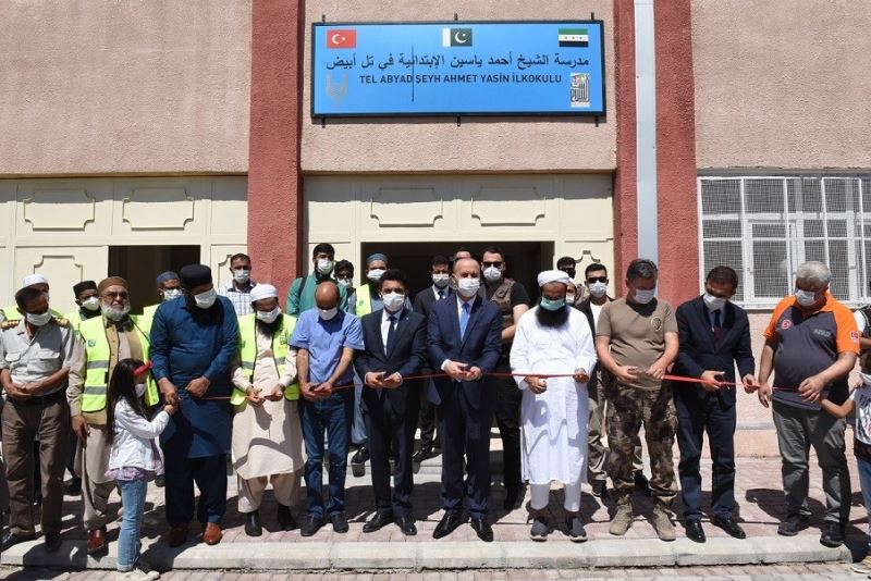Şanlıurfa Valisi Abdullah Erin’in, Barış Pınarı bölgesindeki insanlara destek olmaları için uluslararası yardım kuruluşlarına yaptığı çağrının ardından Şanlıurfa’ya bir heyet gönderen Pakistan Beytüsselam İnsani Yardım Derneğinin Telabyad’da onarım ve tefrişat işlerini yaptığı Şeyh Ahmet Yasin İlkokulu, düzenlenen törenle eğitim öğretimin hizmetine sunuldu.