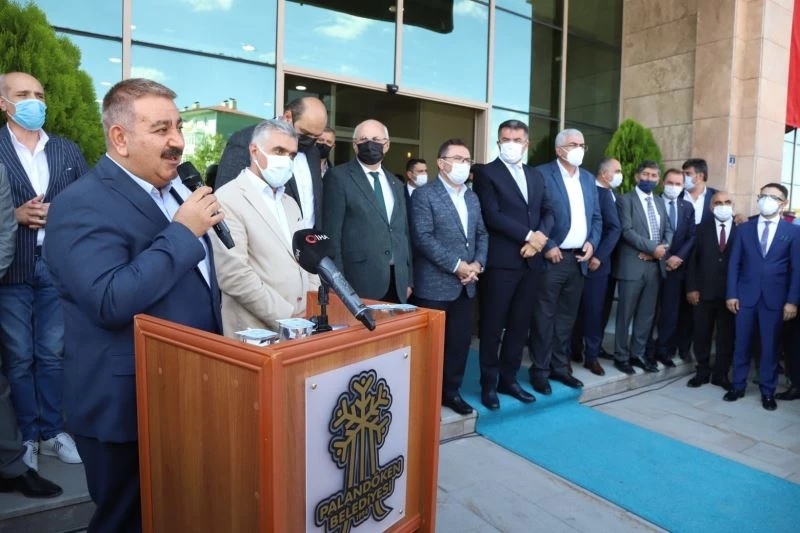 Palandöken Belediyesi önünde düzenlenen törene, İçişleri Eski Bakanı AK Parti Erzurum Milletvekili Selami Altınok, Erzurum Valisi Okay Memiş, AK Parti Erzurum İl Başkanı Mehmet Emin Öz, Erzurum Büyükşehir Belediyesi Başkanvekili Fevzi Polat, Erzurum Büyükşehir Belediyesi Genel Sekreteri Zafer Aynalı, İlçenin ilk Belediye Başkanı olan Sıddık Polat, AK Parti Palandöken İlçe Başkan Yardımcısı Turhan Dinler, Milliyetçi Hareket Partisi Palandöken İlçe Başkanı Ünsal Kızılyar, Palandöken Belediyesi Meclis Üyeleri, AK Parti teşkilat mensupları, Milliyetçi Hareket Partisi teşkilat mensupları ve çok sayıda davetli katıldı.