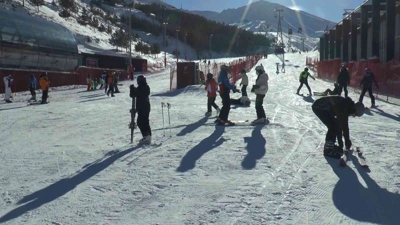 Kar kalınlığının bir metreye yaklaştığı Palandöken Kayak Merkezinde yaşanan yoğunluk renkli görüntüler oluşturdu.