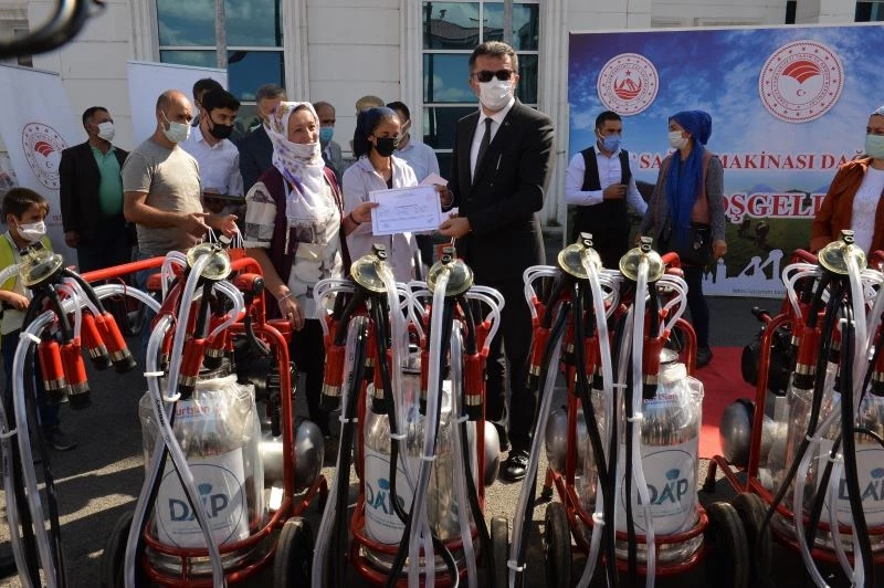 Erzurum’un Çat ilçesinde ’Pamuk Eller Nasır Tutmasın’ projesi kapsamında 89 çiftçiye süt sağım makinesi dağıtıldı.