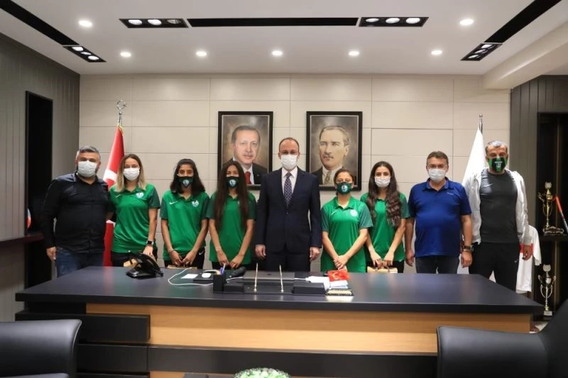 Pamukkale Belediye Başkanı Avni Örki, Denizli’yi kadınlar 2. Ligi’nde temsil eden Horozkentsporluları ağırladı. 19 yaş altı Bayan Futbol Milli Takımı’na çağrılan 5 sporcuya çeşitli hediyeler veren Başkan Örki, “Sporcularımıza milli takımlarda başarılar diliyorum” dedi.
