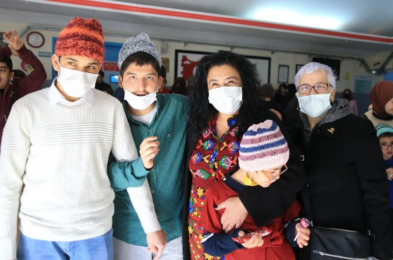 Pamukkale Belediyesi ve Yunus Emre Mahallesi Muhtarlığı işbirliği ile mahalle sakinleri tarafından örülen bereler Polis Amca Okulu’nda bulunan çocukları ısıttı.