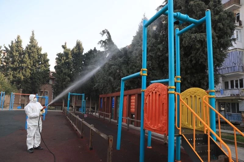 Korona virüs ile mücadele için yoğun çaba harcayan Pamukkale Belediyesi, dezenfekte işlemlerini aralıksız sürdürüyor. Halkın ortak kullandığı mekanlar başta olmak üzere bir çok yer düzenli olarak dezenfekte edilerek halkın sağlığı korunmaya çalışılıyor. Korona virüs tedbirleri kapsamında 20 yaş altındaki vatandaşların sokağa çıkma saatleri 13.00 ile 16.00 olarak belirlenirken, Pamukkale Belediyesi Sağlık İşleri Müdürlüğü ekipleri parklarda dezenfekte işlemlerini buna göre planlıyor. Günün erken saatlerinden itibaren özellikle çocukların zaman geçirecekleri park ve oyun alanları dezenfekte ediliyor. Çocuklar da hafta içinde sokağa çıkma kısıtlamasının kalktığı saatlerde parklara akın ederek oyun gruplarında gönüllerince eğleniyor. Aileler de dezenfekte edilmiş alanlarda çocuklarının güvenle oynamasından dolayı memnun olduklarını dile getirdi.