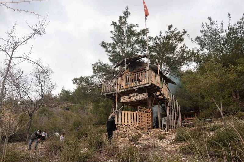 Yaz-kış hafta sonlarını ağaç evde geçiriyor