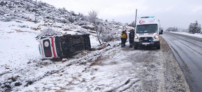 Gaziantep’te hasta almaya giden ambulans karlı yolda kayarak şarampole devrildi. Kazada, ambulans sürücüsü yaralanırken, araçta bulunan sağlık çalışanları kazadan yara almadan kurtuldu.